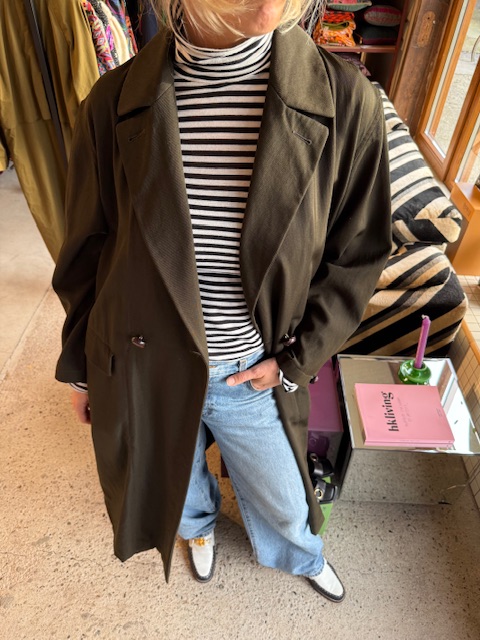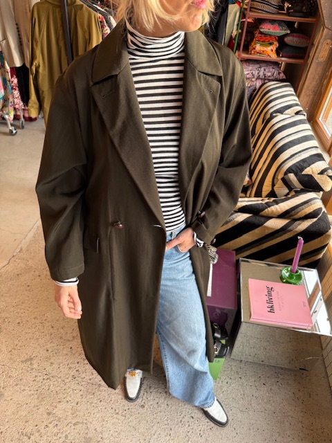 De jas heeft een double breasted knoop sluiting en is perfect afgewerkt.
